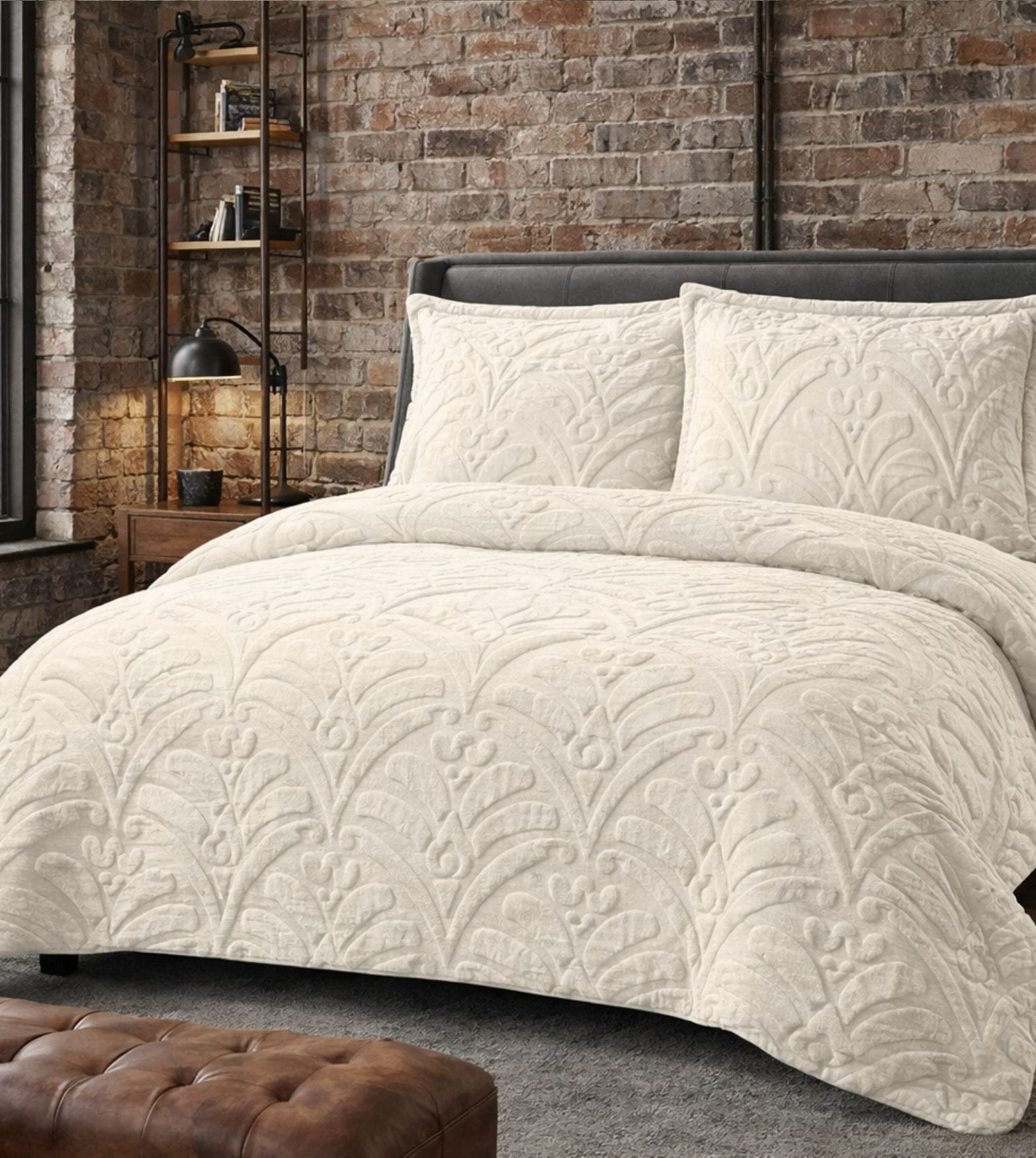 Efektowna tekstura 3D: Unikalny, tłoczony wzór koncentrycznych okręgów i fal wykonany w technologii „tufted”. Wypukła struktura wygląda luksusowo i jest niezwykle przyjemna dla skóry.