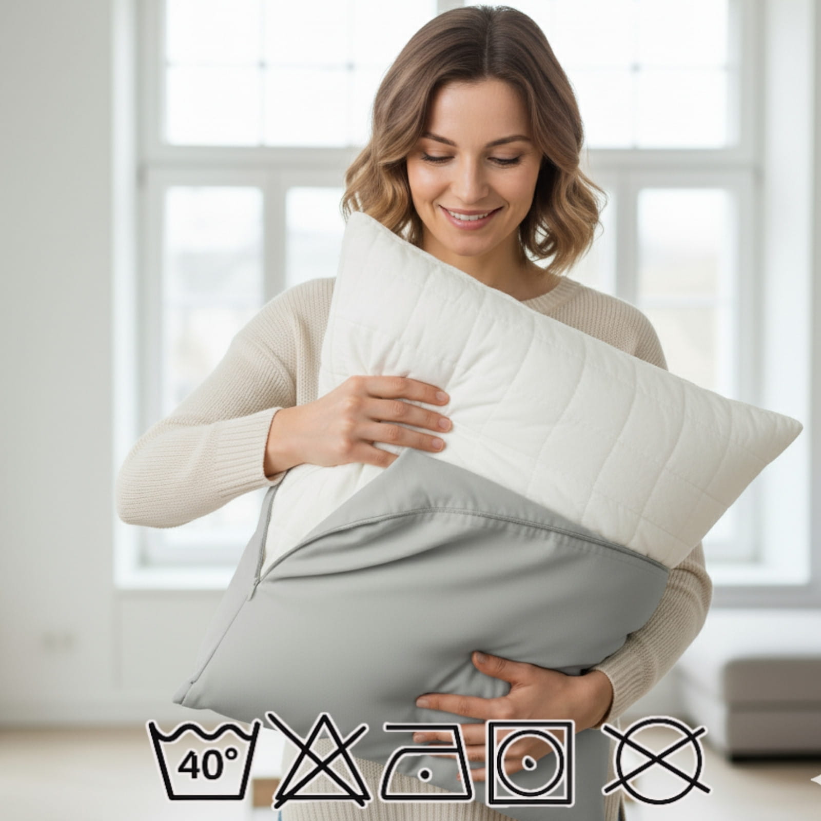 Co ją wyróżnia? Naturalny materiał o gramaturze 150 g/m² sprawia, że poszewka jest niezwykle wytrzymała, a jednocześnie miękka w dotyku. Jasnoszary odcień optycznie powiększa i rozjaśnia przestrzeń, wprowadzając do niej powiew świeżości. Dzięki ukrytemu zamkowi błyskawicznemu poduszka prezentuje się estetycznie z każdej strony, a certyfikat Oeko-Tex gwarantuje bezpieczeństwo dla Ciebie i Twoich bliskich.