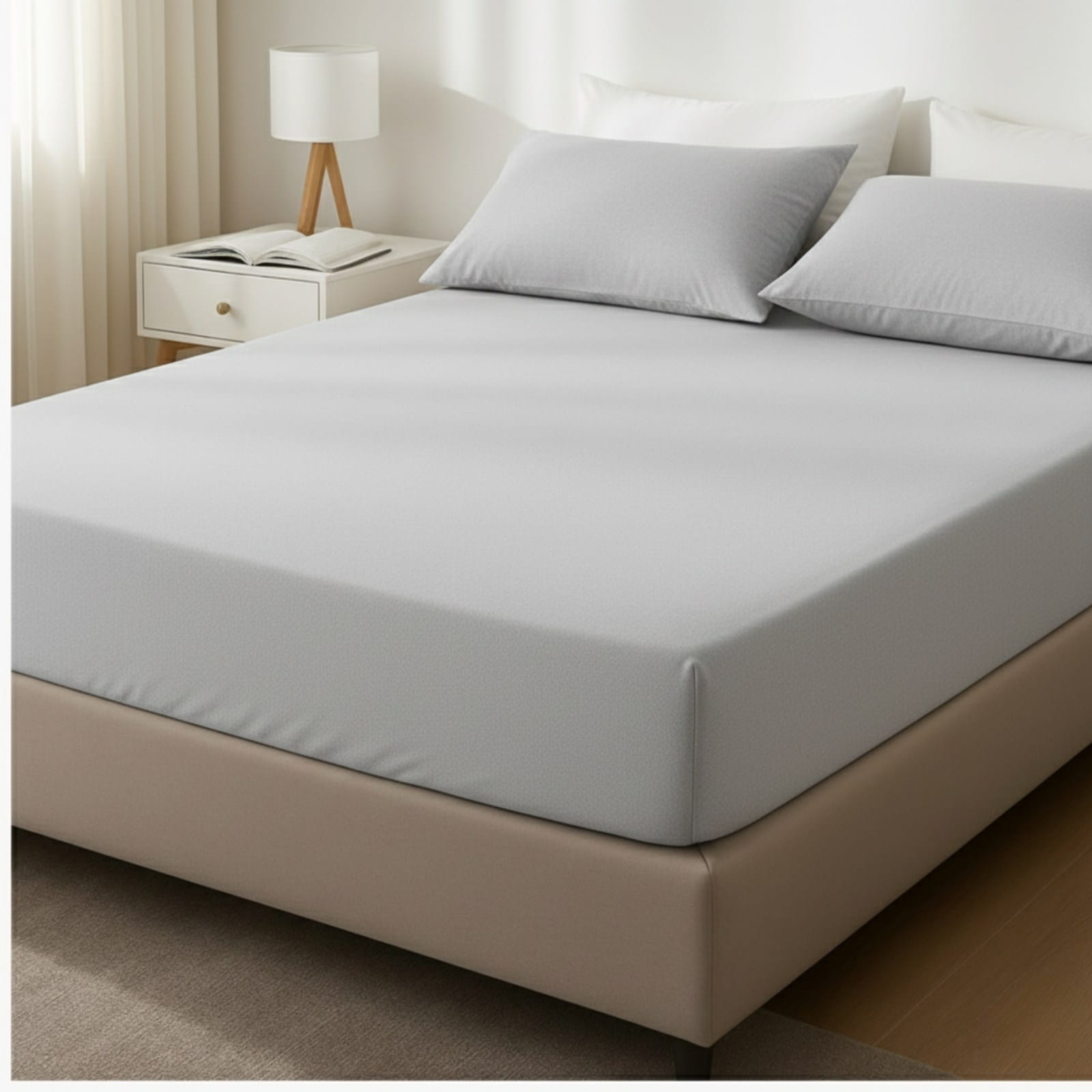 Prześcieradło z gumką 90x200 cm – Jasnoszara satyna bawełniana Premium Eleganckie prześcieradło 90x200 +25 cm | 100% Satyna | Kolor Jasnoszary