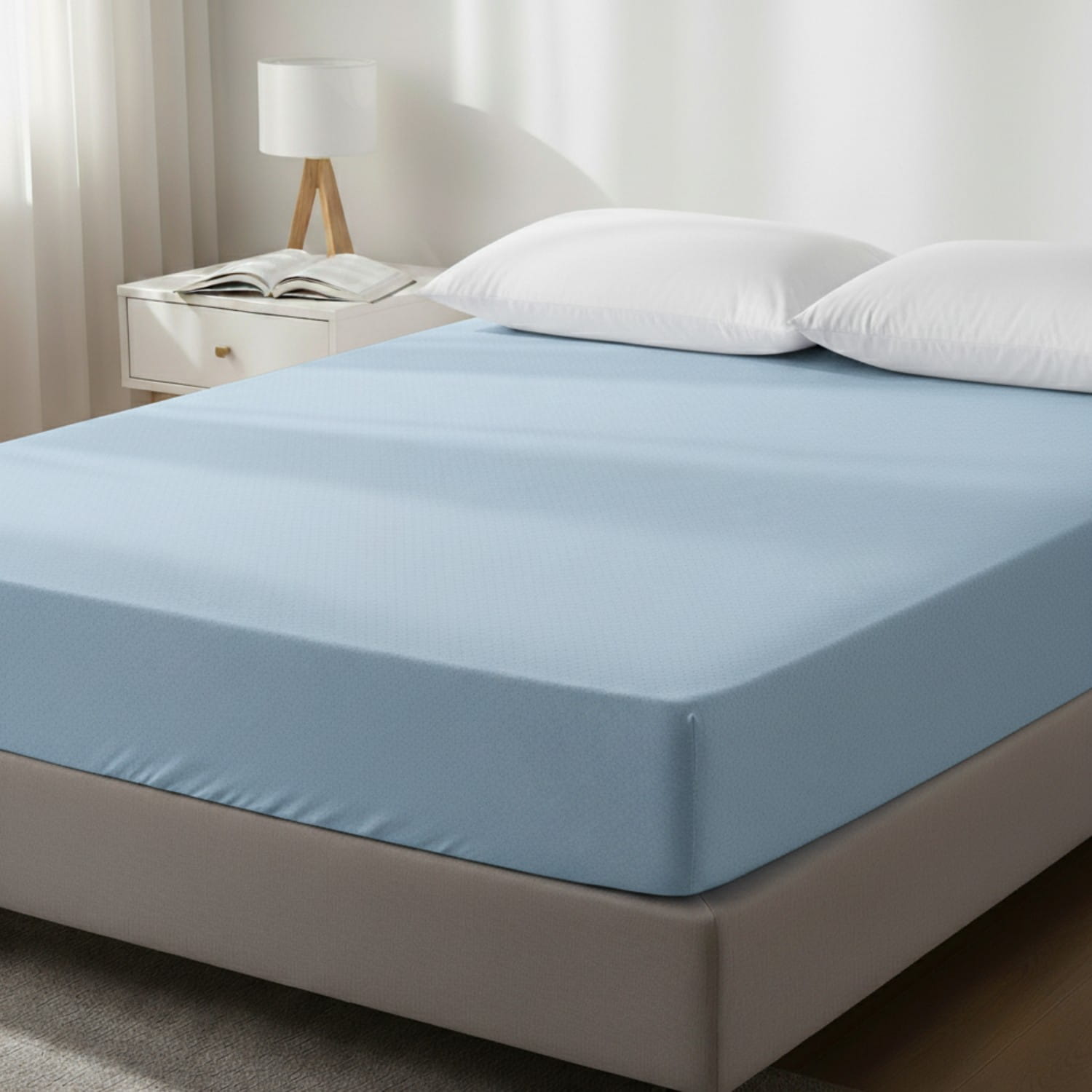 Miękkość, która otula – prześcieradło z gumką 90x200 cm | Bawełna 100% | Kolor NIEBIESKI