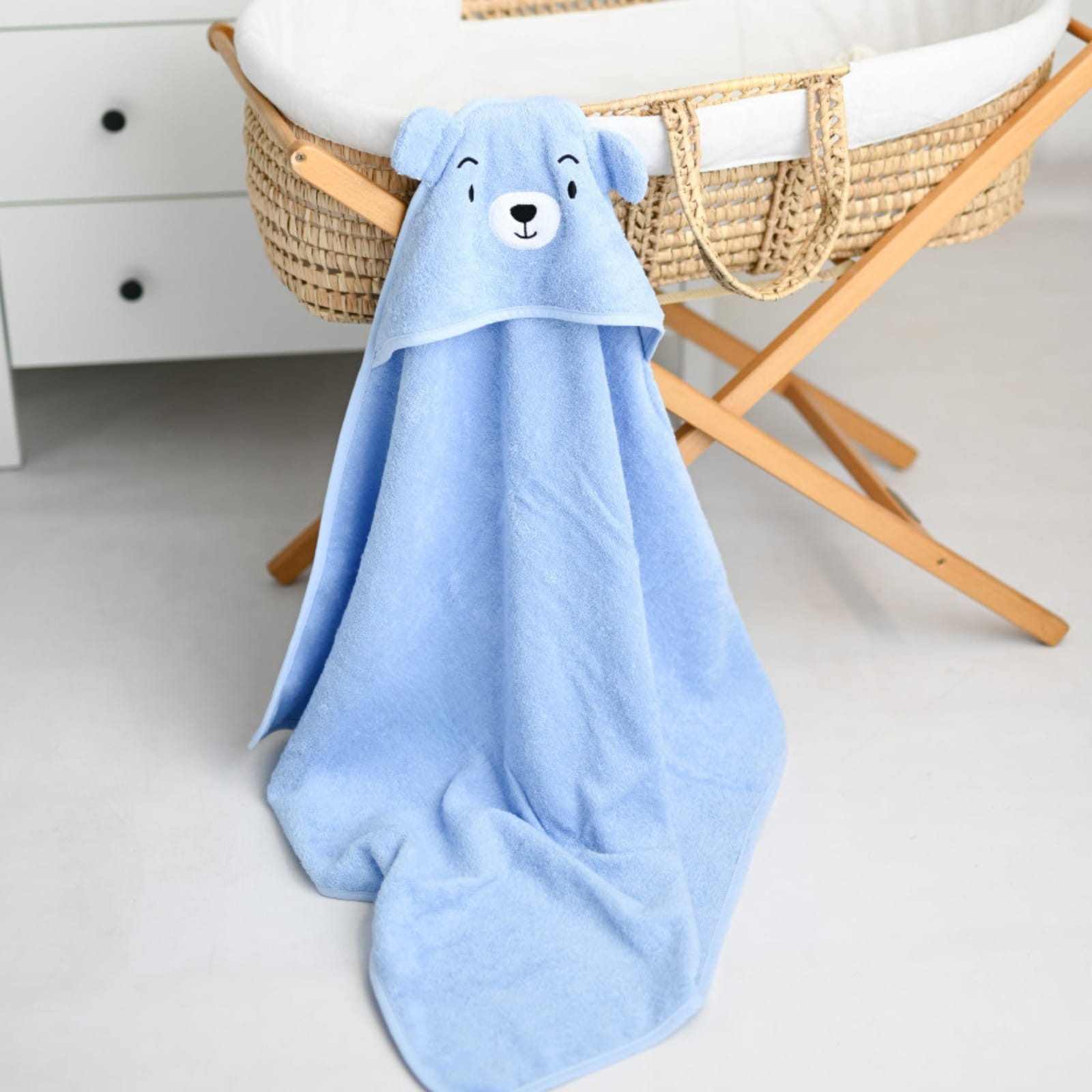 Delikatne otulenie po kąpieli – ręcznik niemowlęcy z kapturkiem | 100% Bawełna | Kolor NIEBIESKI