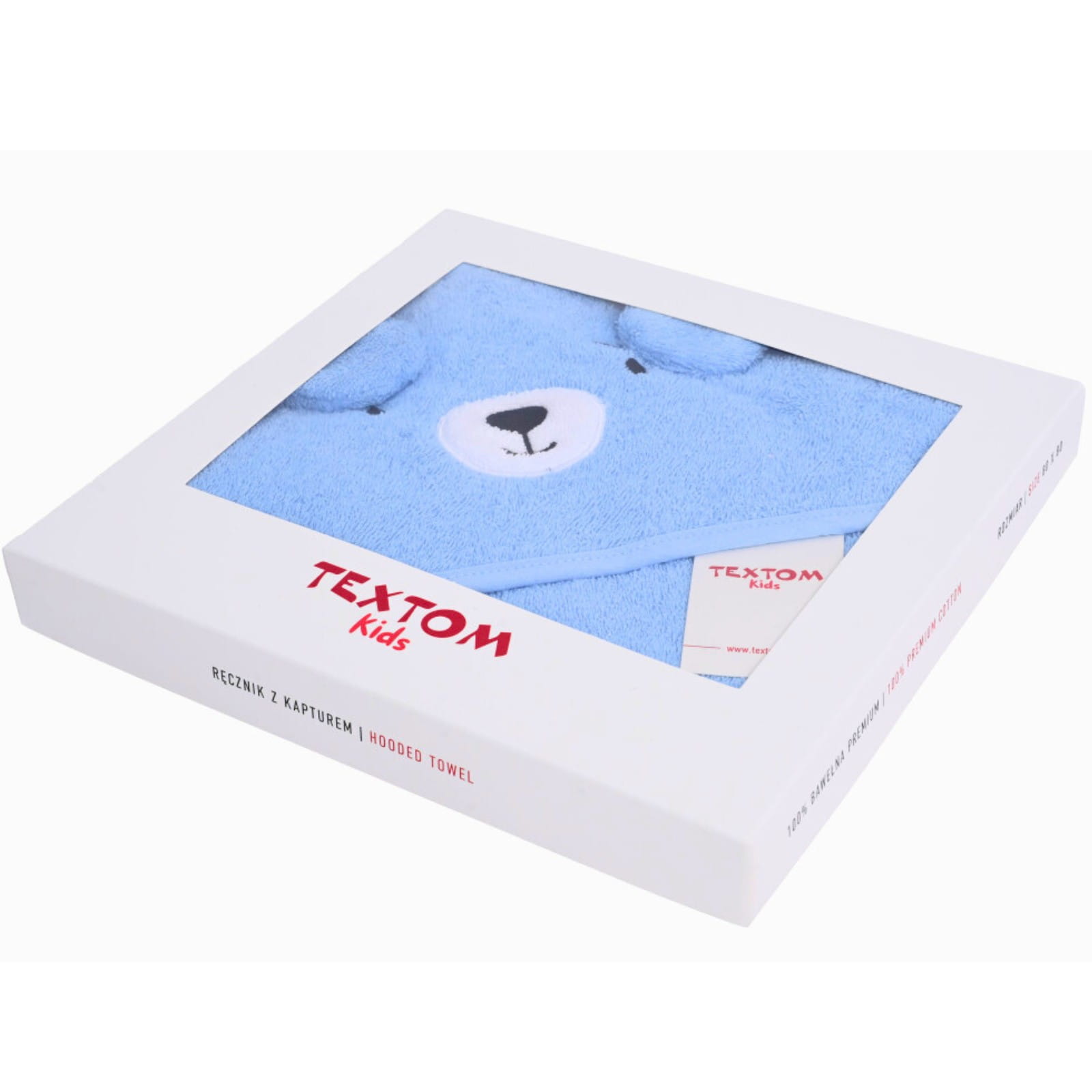 Ręcznik dziecięcy z kapturkiem Miś 80x80 cm – Niebieska miękkość Premium TEXTOM